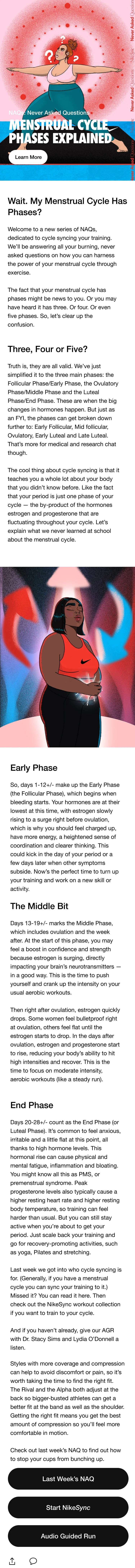 Partnering with Nike and global expert on female athletes, Dr Stacy Sims, we created content to help people with periods train to the key phases of their cycle and learn more about their physiology.